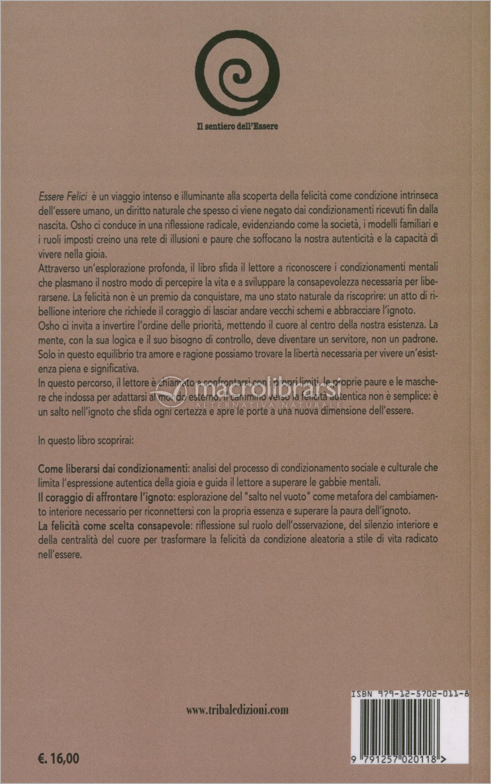 Essere Felici è un viaggio intenso e illuminante alla scoperta della felicità come condizione intrinseca dell’essere umano, un diritto naturale che spesso ci viene negato dai condizionamenti ricevuti fin dalla nascita.