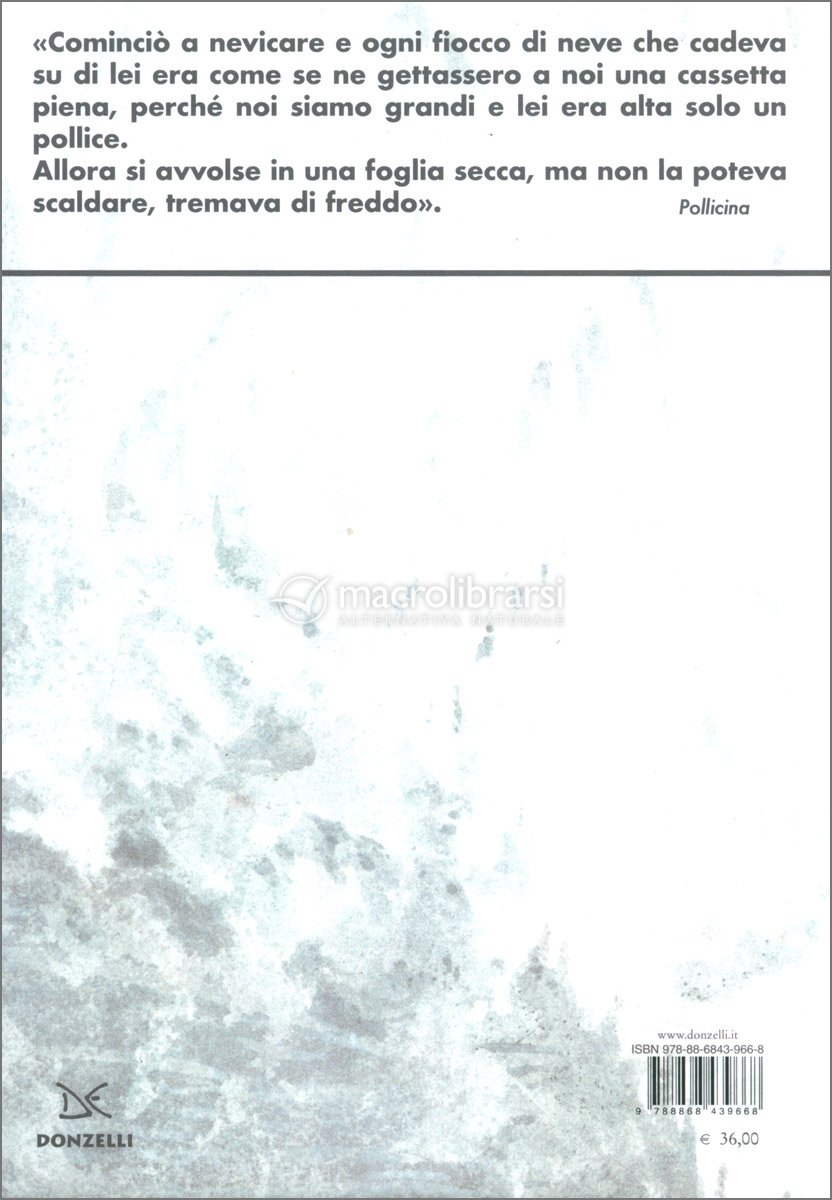 «Cominciò a nevicare e ogni fiocco di neve che cadeva su di lei era come se ne gettassero a noi una cassetta piena, perché noi siamo grandi e lei era alta solo un pollice. Allora si avvolse in una foglia secca, ma non la poteva scaldare, tremava di freddo». Pollicina