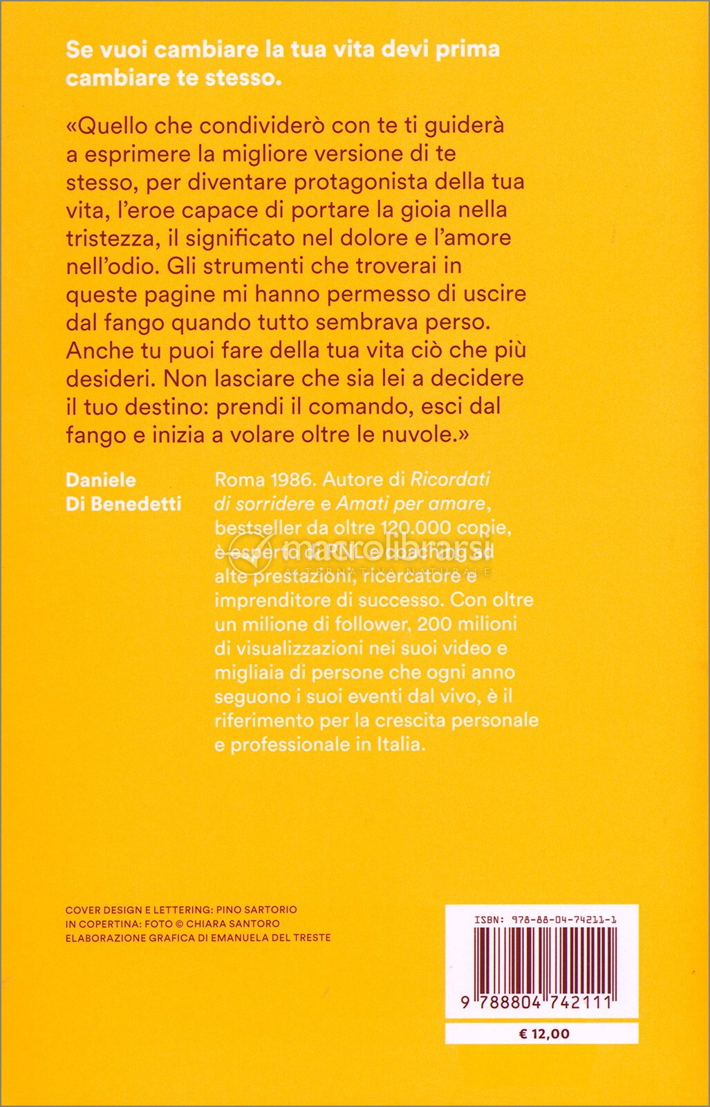 In queste pagine ti ho indicato il percorso e ti sentirai guidato gradualmente a riprendere il timone della tua vita. Capirai quali sono i fattori determinanti del successo e scoprirai in che modo anche tu puoi fare della tua vita ciò che più desideri. Non lasciare che sia lei a decidere il tuo destino: prendi il comando, esci dal fango e inizia a volare oltre le nuvole.