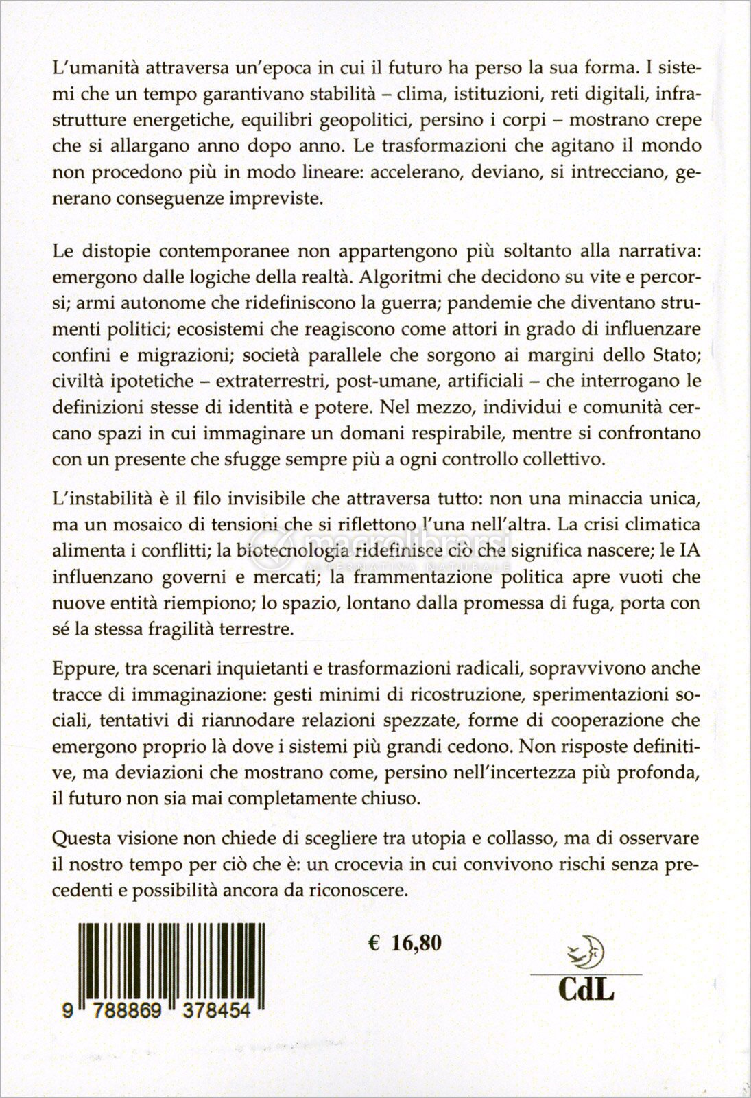 Eppure, dentro questi scenari inquietanti, il libro non si ferma al collasso. Tra le fratture restano tracce di immaginazione: gesti minimi di ricostruzione, sperimentazioni sociali, tentativi di riannodare relazioni spezzate, forme di cooperazione che emergono proprio dove i sistemi più grandi cedono. Non soluzioni definitive, ma deviazioni capaci di mostrare che, anche nell’incertezza più profonda, il futuro non è mai completamente chiuso.
