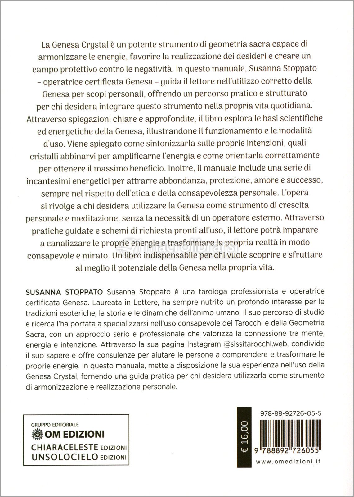 In questo manuale, Susanna Stoppato – operatrice certificata Genesa – guida il lettore nell’utilizzo corretto della Genesa per scopi personali, offrendo un percorso pratico e strutturato per chi desidera integrare questo strumento nella propria vita quotidiana.