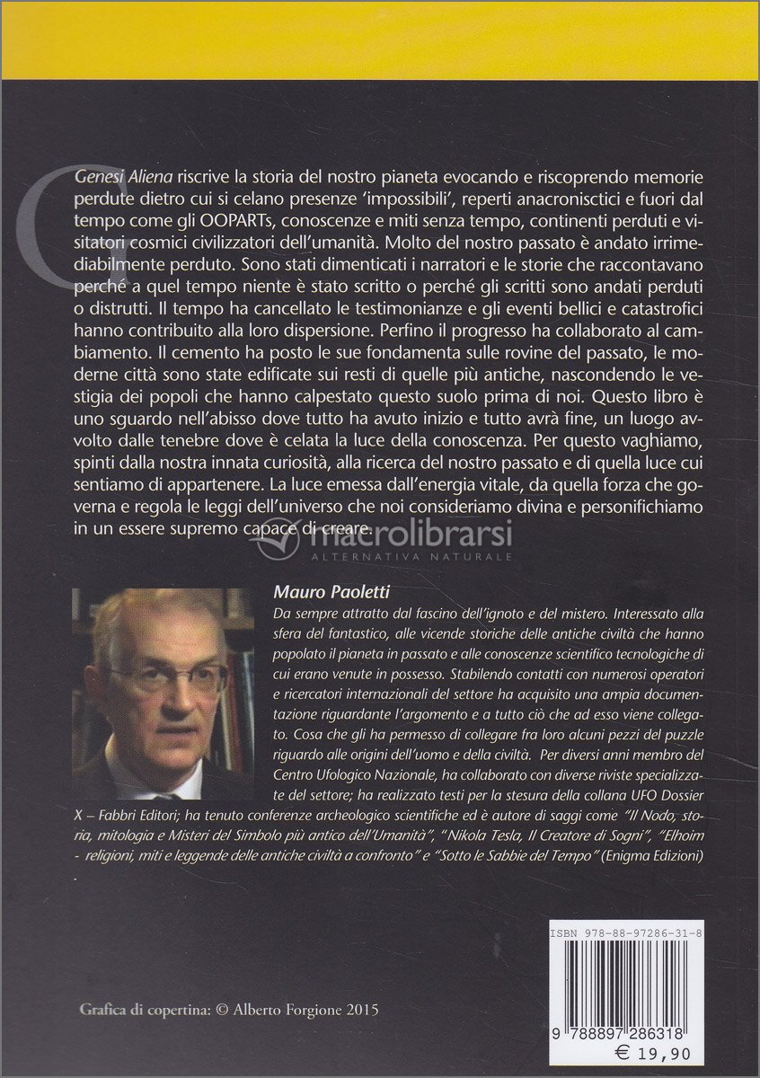 Genesi Aliena riscrive la storia del nostro pianeta evocando e riscoprendo memorie perdute dietro cui si celano presenze 'impossibili', reperti anacronisctici e fuori dal tempo come gli OOPARTs, conoscenze e miti senza tempo, continenti perduti e visitatori cosmici civilizzatori dell'umanità.