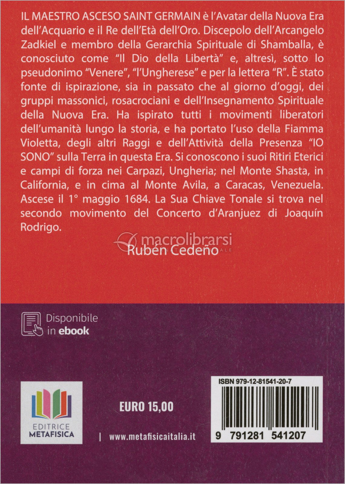 Saint Germain è un Maestro Asceso, ossia è una di quelle persone che dopo una o più esperienze terrene, realizzano in sé la fusione tra materia e spirito ottenendo un "corpo di gloria" non più soggetto alle leggi di gravità e di morte. Nonostante la... Leggi di più...