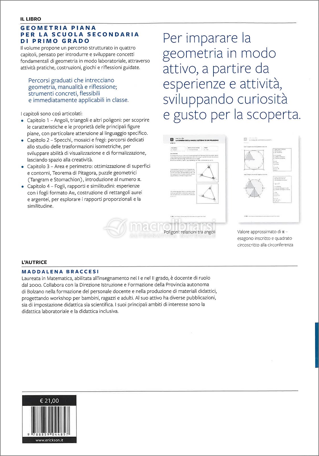 Questo volume propone un percorso strutturato per affrontare la geometria piana nella scuola secondaria di primo grado attraverso un approccio laboratoriale, concreto e cooperativo.