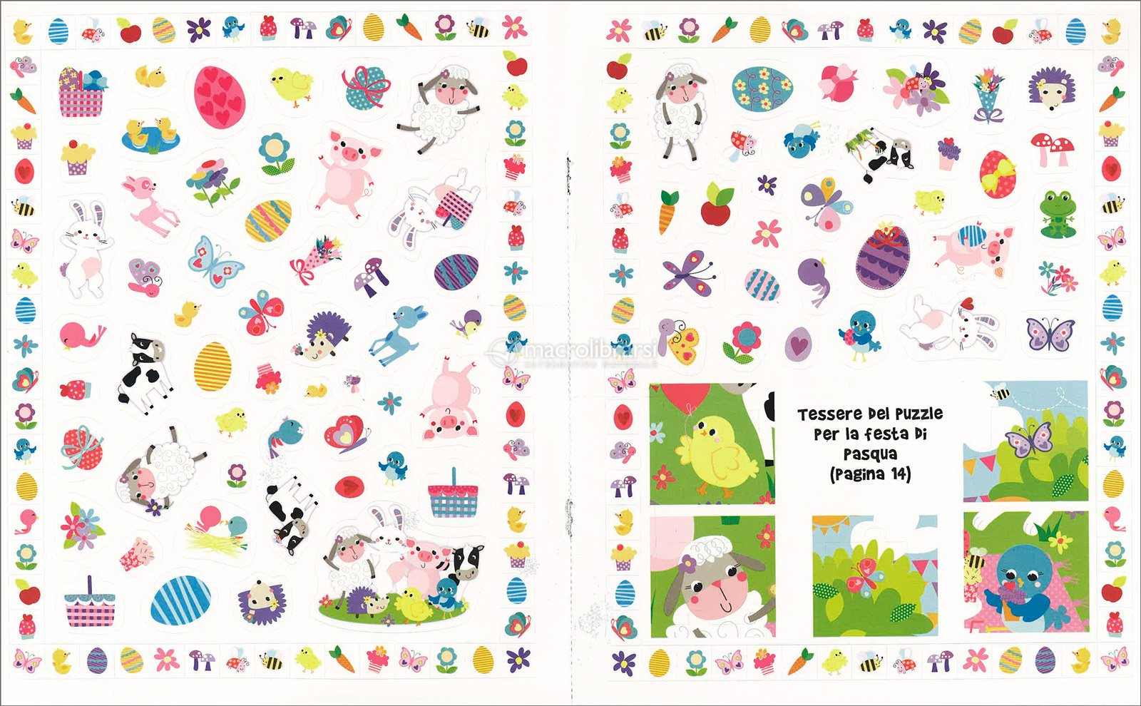 Tra coniglietti, pulcini, uova decorate e scenari primaverili, ogni pagina invita a esplorare e giocare in modo attivo.