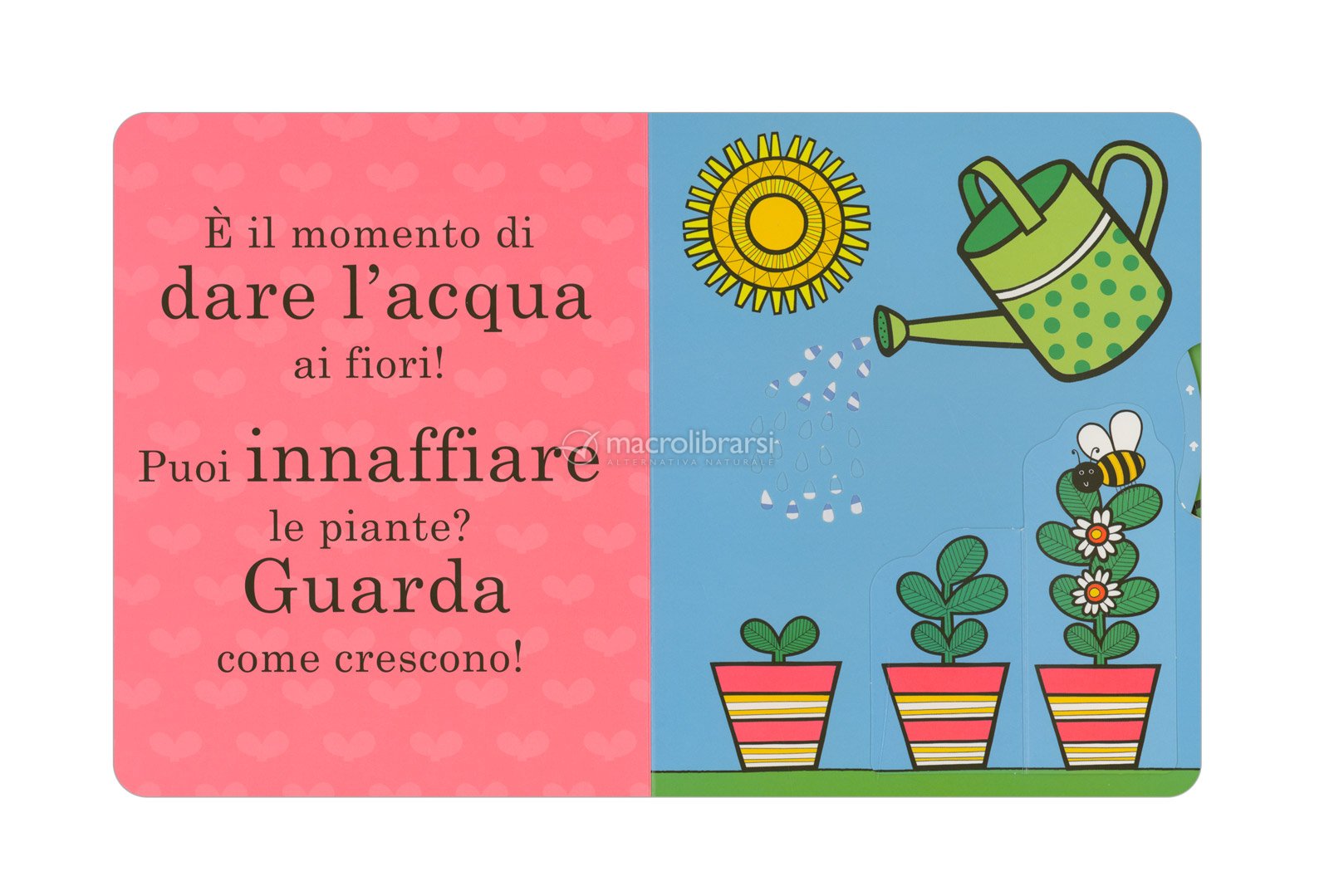 Le pagine accompagnano i più piccoli alla scoperta di ciò che serve per coltivare, mostrando in modo semplice e immediato come nascono le piante e come prendersene cura.