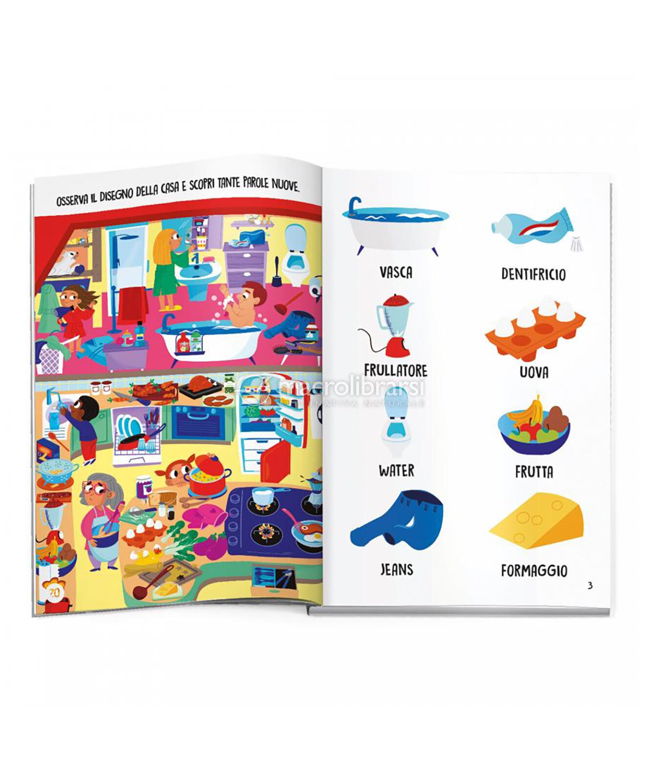 Libro di 32 pagine da sfogliare per imparare tante parole nuove organizzate per ambienti lessicali.