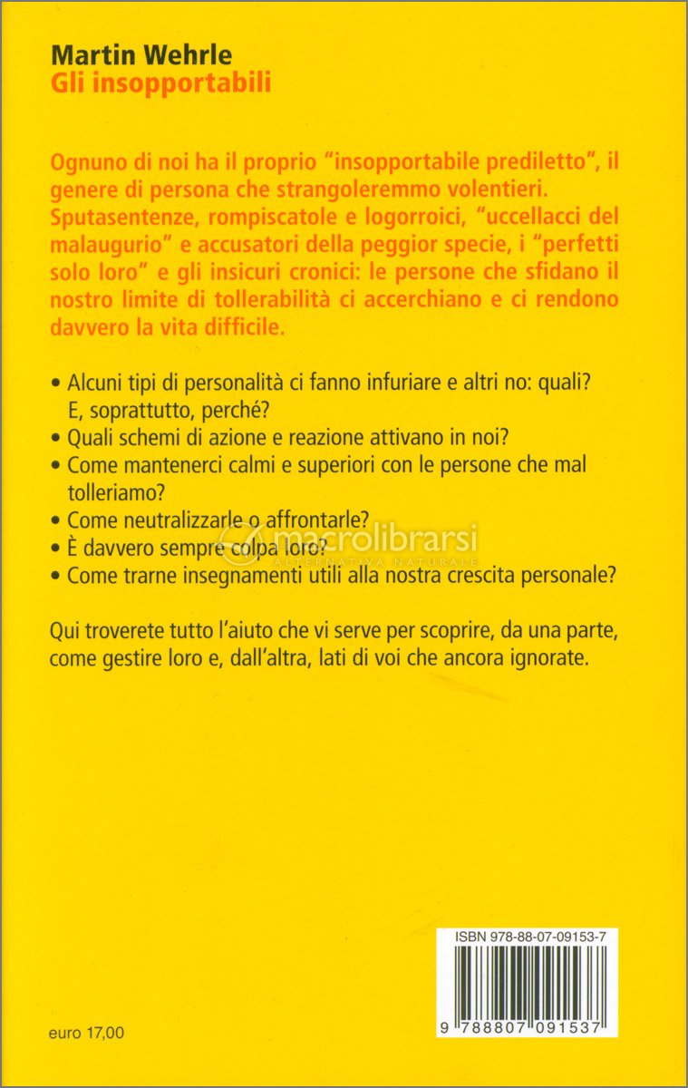 Martin Wehrle ci guida a riconoscere quali sono gli insopportabili che ci disturbano di più, analizza le tipologie più frequenti e, in tono anche spiritoso, ci indica come comportarci dinanzi a ciascuna di esse.