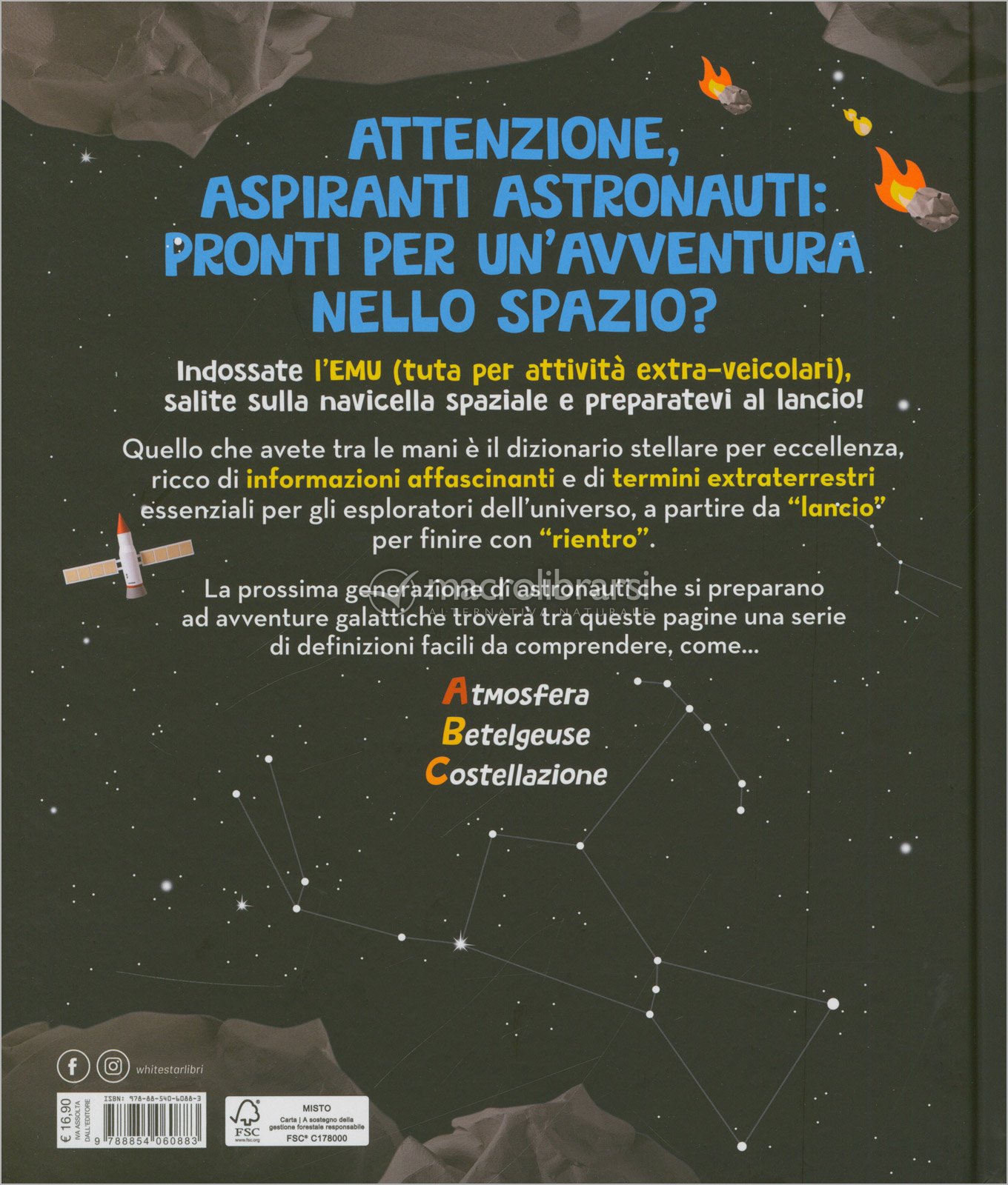 Un dizionario spaziale illustrato con oltre 50 parole per scoprire in modo semplice comete, pianeti, razzi e tutto ciò che rende l’universo così affascinante.