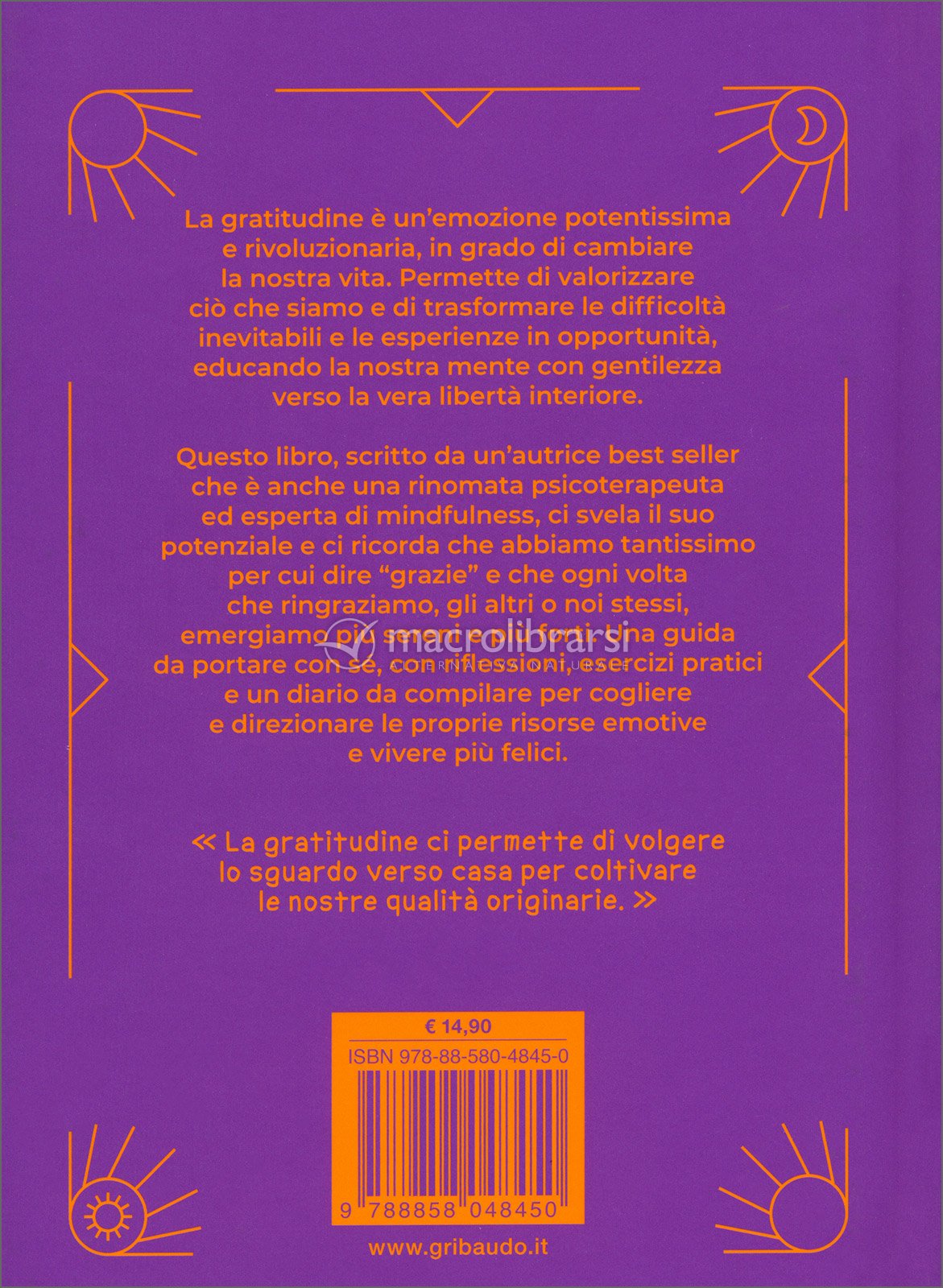 Questo libro, scritto da un’autrice che è anche una rinomata psicoterapeuta ed esperta di mindfulness, ci svela il suo potenziale e ci ricorda che abbiamo tantissimo per cui dire “grazie” e che ogni volta che ringraziamo, gli altri o noi stessi, emergiamo più sereni e più forti.