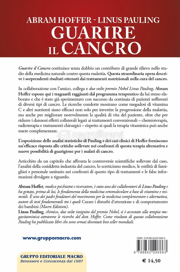 In collaborazione con l’amico, collega e due volte premio Nobel Linus Pauling, Abram Hoffer espone in quest’opera i traguardi raggiunti dal programma terapeutico da lui stesso elaborato e che è stato già sperimentato con successo da centinaia di pazienti sofferenti di diversi tipi di cancro.