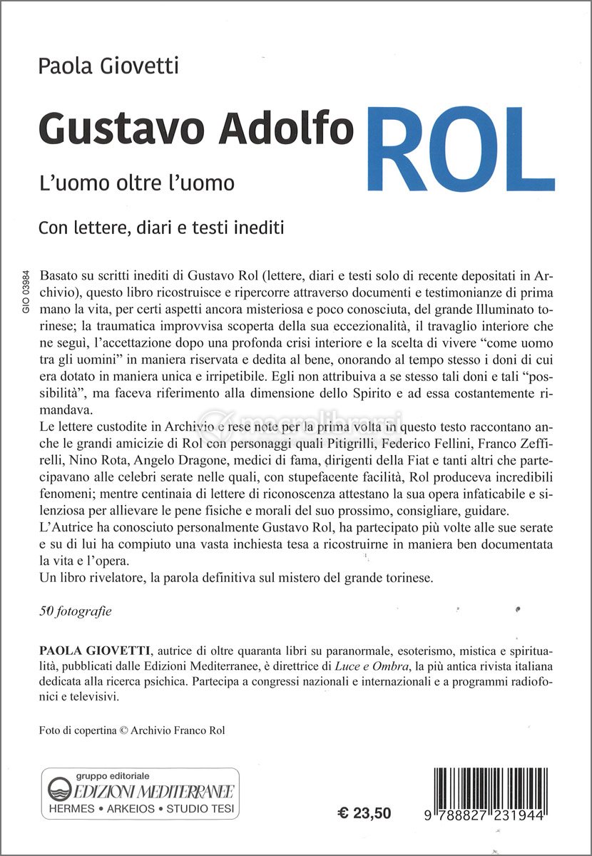 Ecco quindi un nuovo libro, basato su una messe di documenti inediti, che raccontano l'uomo Rol, la sua infanzia, l'adolescenza consapevole e la scolarizzazione travagliata, il lavoro bancario sofferto all'estero, le difficoltà per arrivare al matrimonio, le crisi esistenziali legate alla sua specialissima condizione e molto altro ancora.