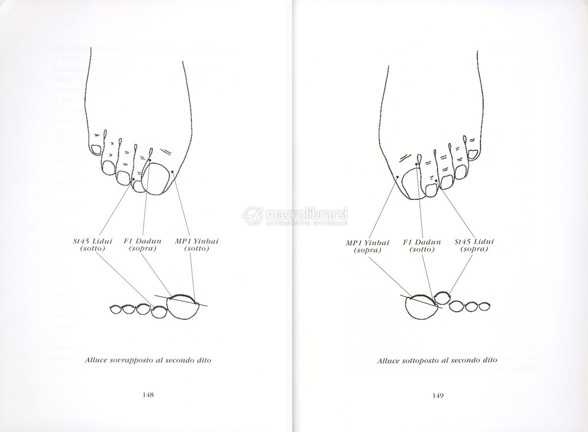 Numerosi i riferimenti alle aree riflesse sul piede e ai meridiani energetici interessati (sia anatomici che riflessi sul piede).