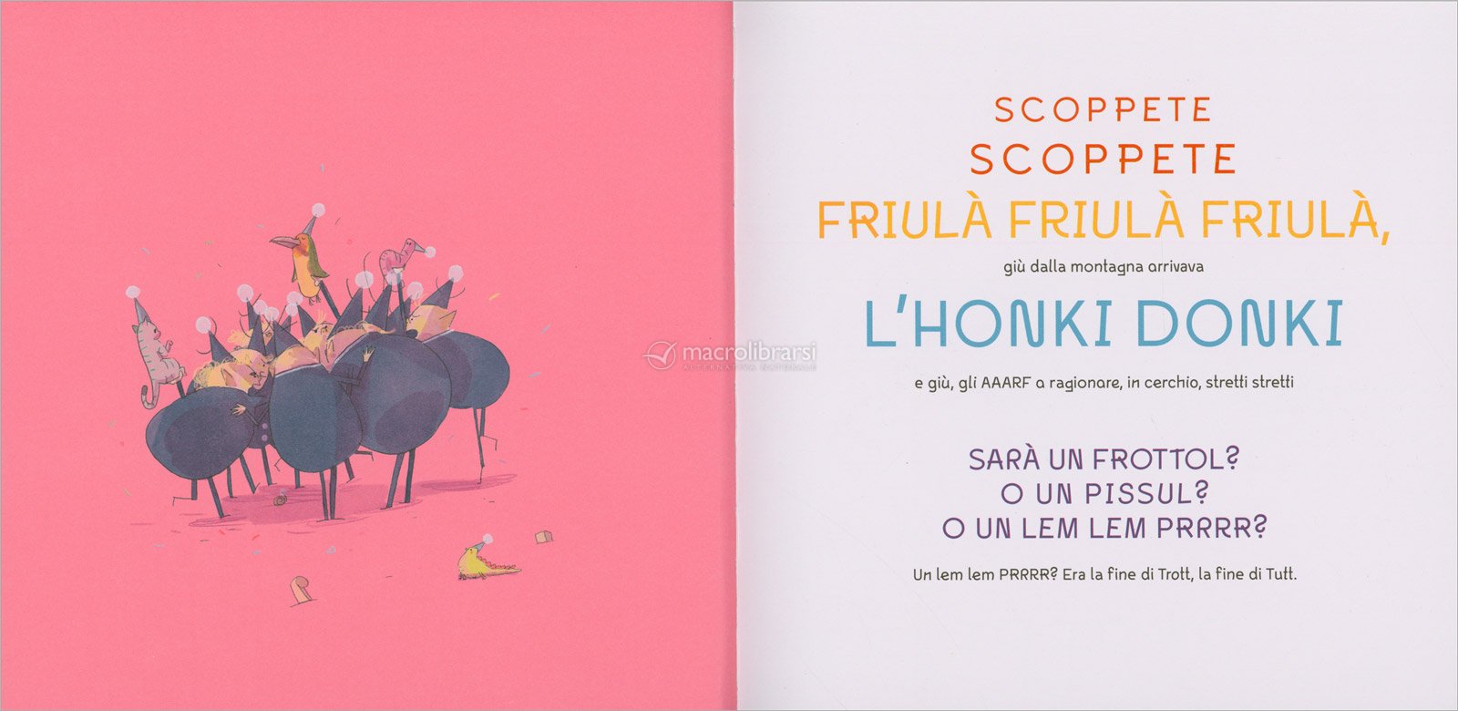 Honki Donki è un racconto ricco di suoni, onomatopee e parole inventate, pensato per trasformare la lettura ad alta voce in un momento di complicità e divertimento.