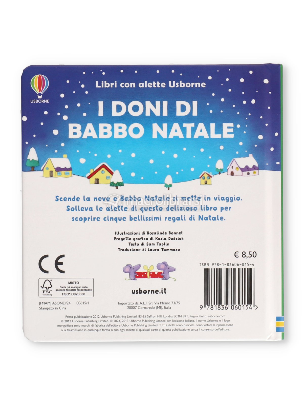I più piccini si divertiranno a seguire Babbo Natale e a scoprire che doni porterà, indovinando cosa si nasconde nei pacchi e aprendo le finestrelle.