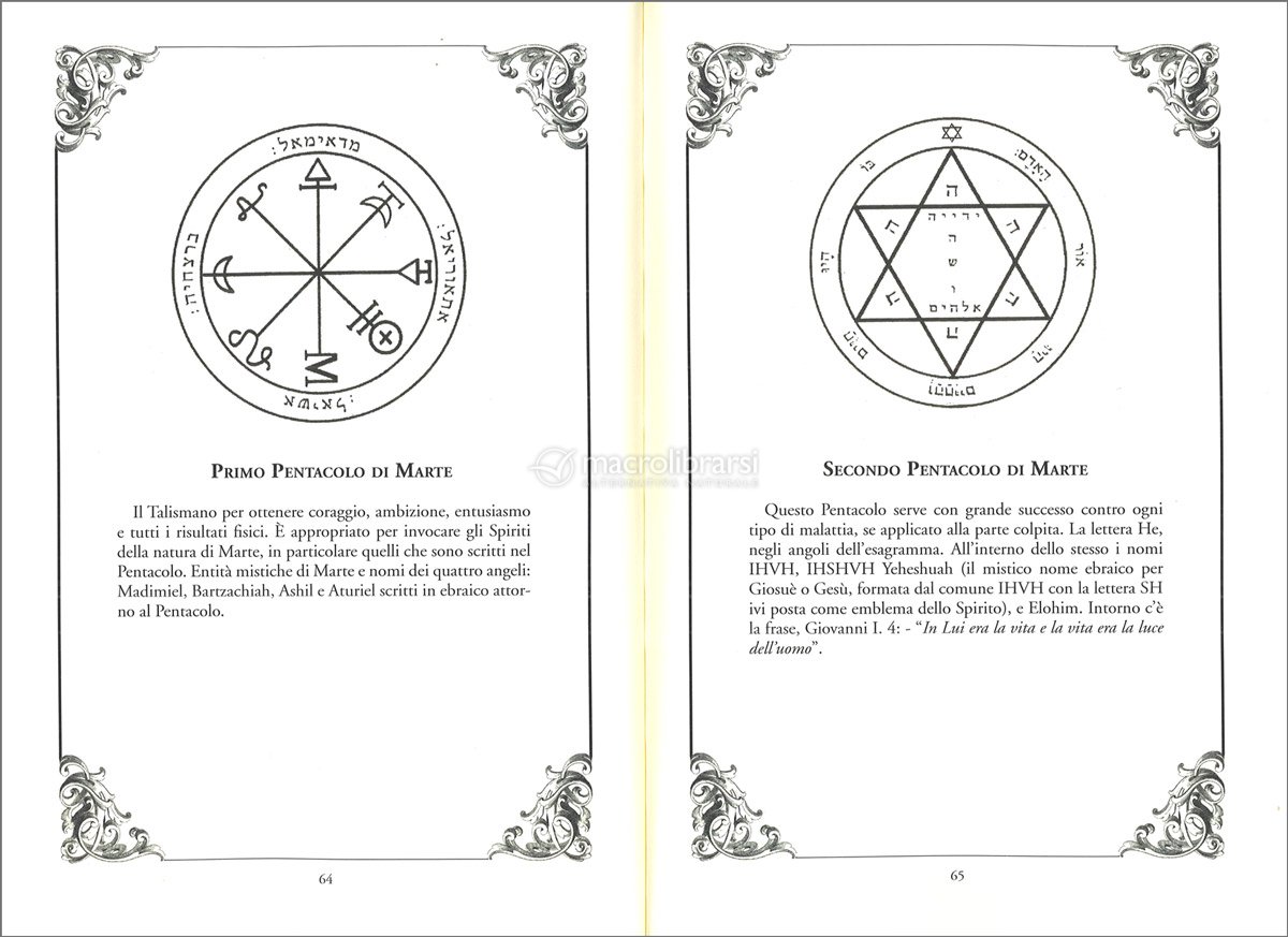 Il testo che “Libraio Editore” propone in elegante edizione illustrata, contiene degli estratti dalla Vera Clavicola e spiega il significato e l’utilizzo dei 44 Pentacoli di Salomone, i simboli che servono a mettersi in contatto con gli archetipi astrali dei pianeti per ottenere benefici in base alla natura dei corpi celesti e degli spiriti che li presiedono.