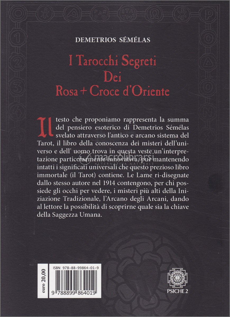 Il testo che proponiamo rappresenta la summa del pensiero esoterico di Demetrios Sémélas svelato attraverso l'antico e arcano sistema del Tarot, il libro della conoscenza dei misteri dell'universo e dell'uomo trova in questa veste un'interpretazione particolarmente innovativa, pur mantenendo intatti i significati universali che questo prezioso libro immortale (il Tarot) contiene.