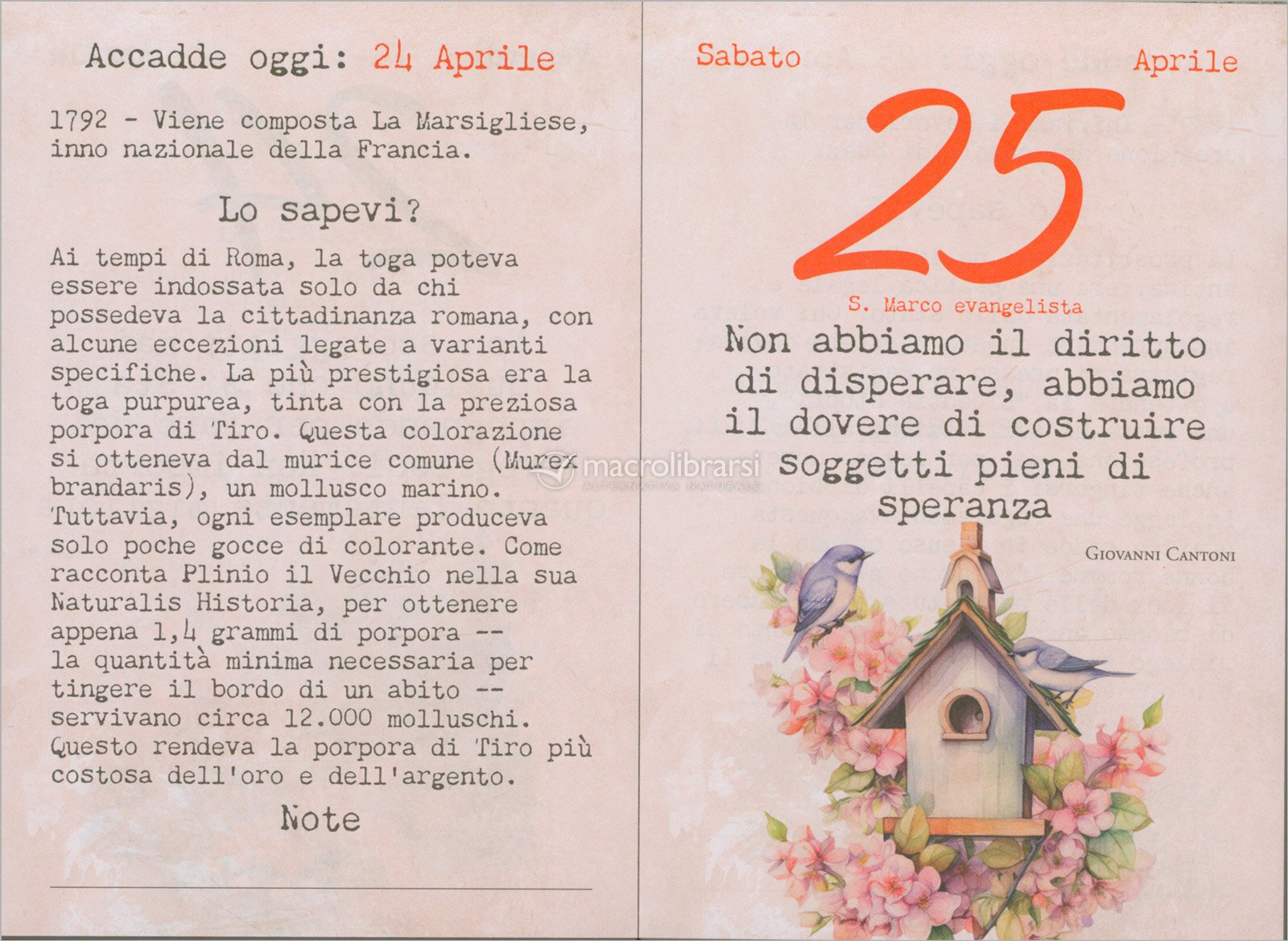 Ogni pagina offre un aforisma motivazionale, un fatto storico significativo e una curiosità dal mondo, trasformando il momento in cui lo consulti in un piccolo spazio di consapevolezza e meraviglia.