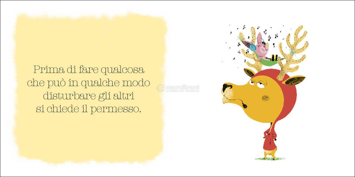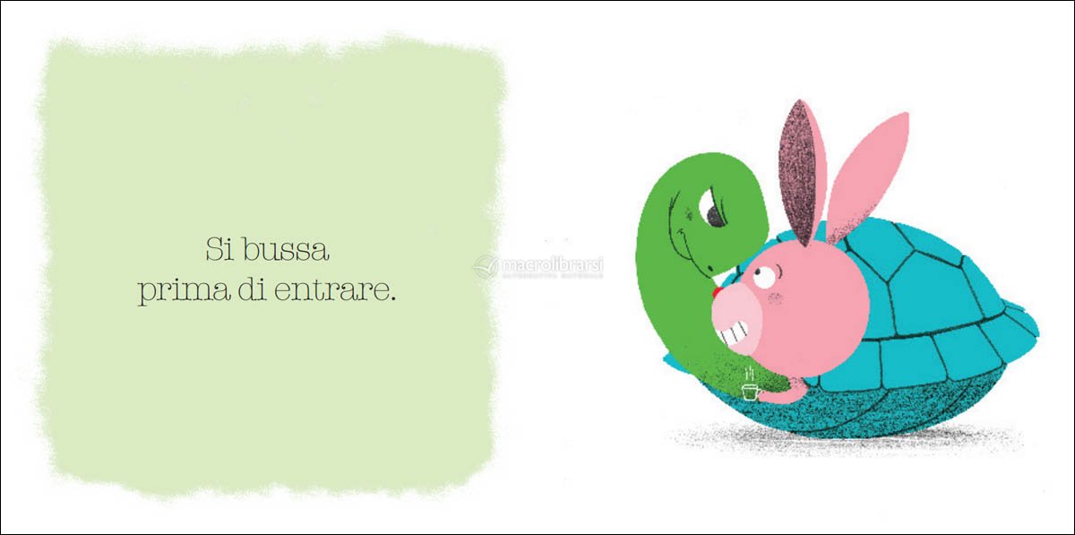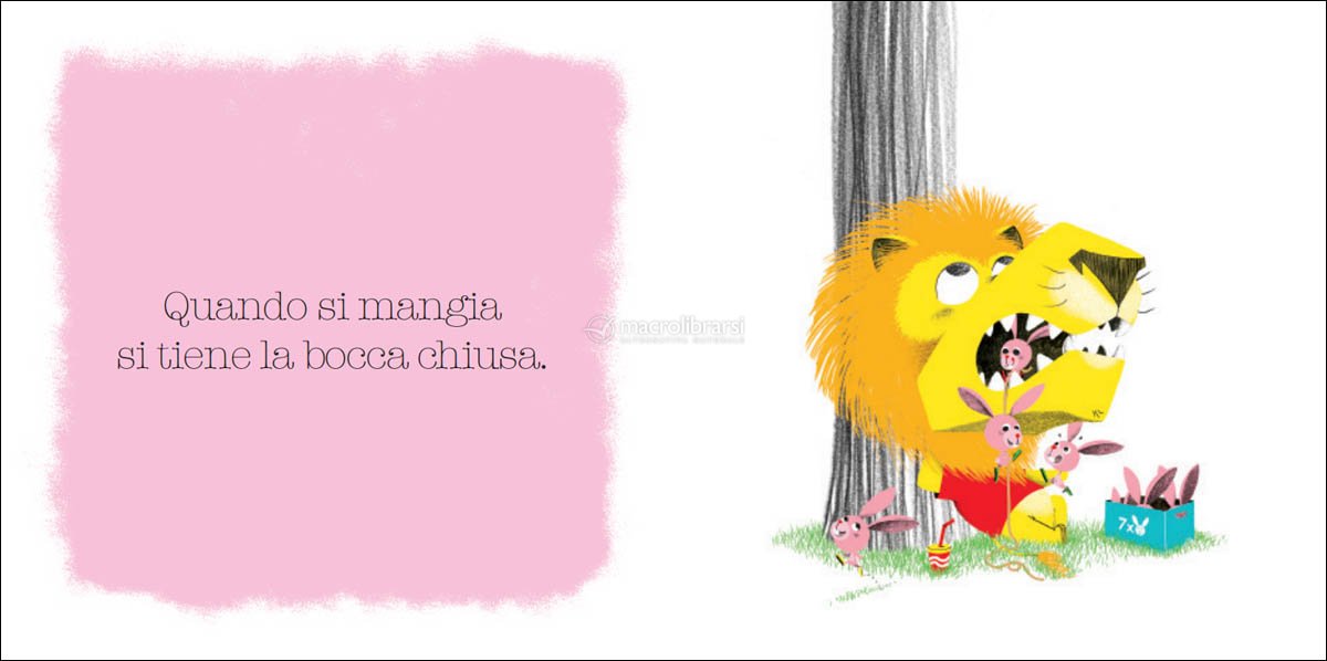 Imparerai che si dice buongiorno quando incontri qualcuno; si bussa prima di entrare; si mangia con la bocca chiusa; non si dicono le parolacce; si dice sempre per favore...