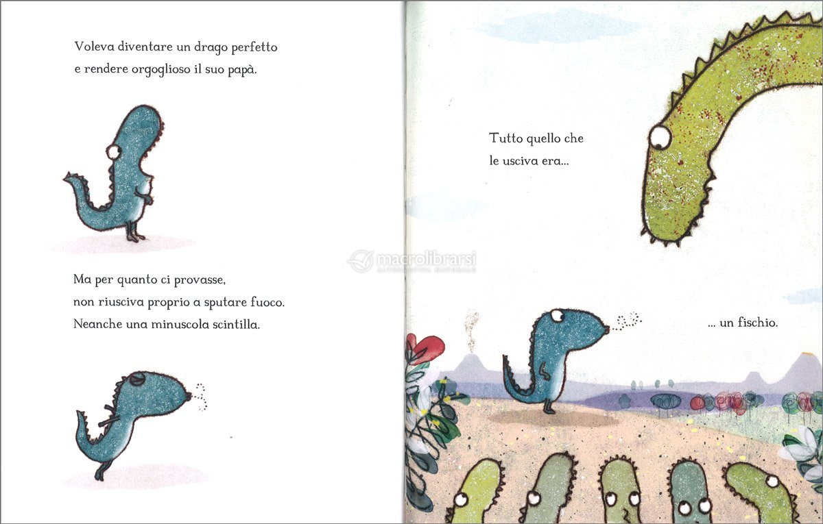 C'era una volta una piccola draghetta. Una piccola draghetta che non amava il fuoco... Voleva diventare un drago perfetto e rendere orgoglioso il suo papà. Ma per quanto ci provasse, non riusciva proprio a sputare fuoco. Neanche una minuscola scintilla...