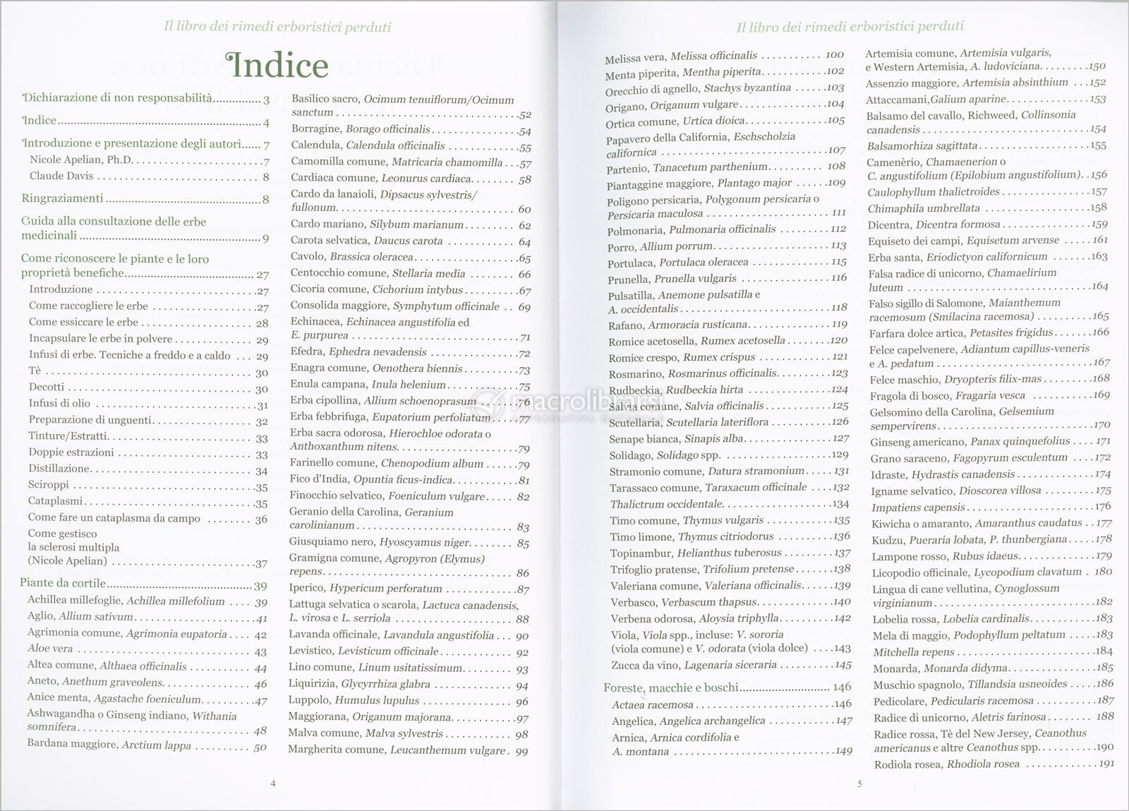 Particolarmente utile è la presenza di un duplice indice, che consente di cercare facilmente i rimedi sia per pianta specifica sia per condizione, rendendo il libro uno strumento di consultazione immediata.