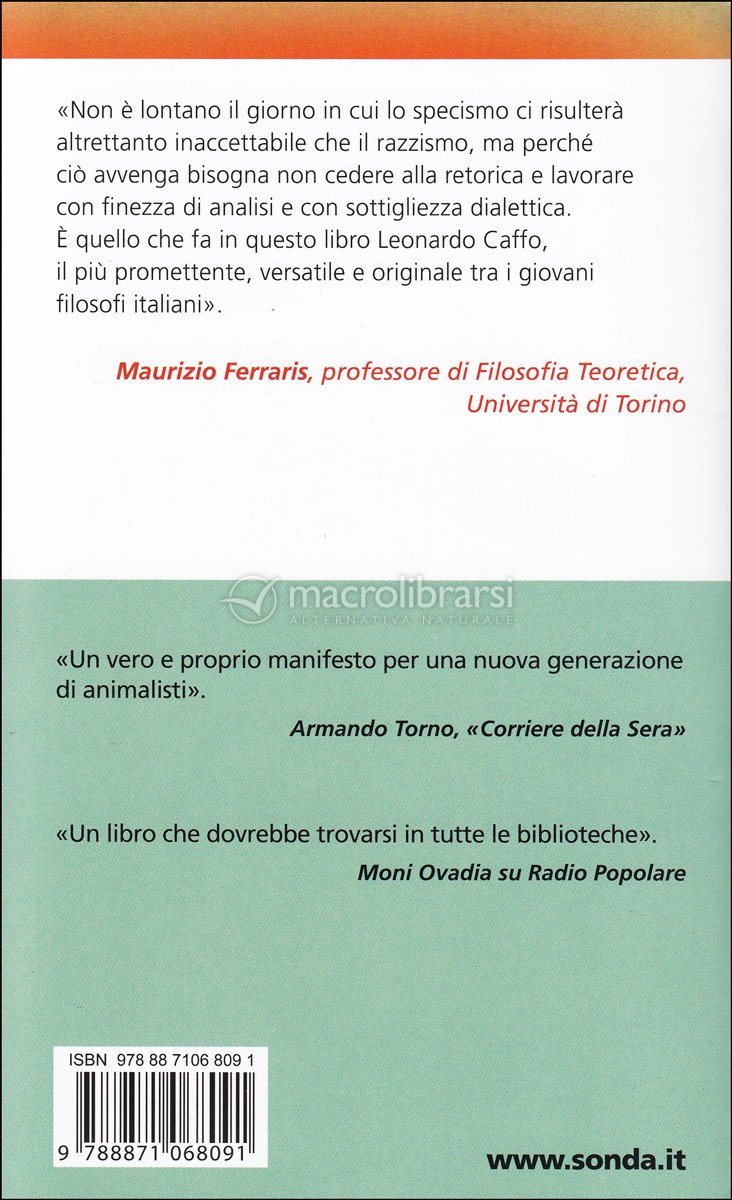 Una confutazione appassionata e rigorosa di tutte le filosofie che relativizzano il dolore animale, con uno sguardo sempre attento alla società (dai cani liberati di Green Hill in Italia, a quelli sterminati in Ucraina, al nascente partito "animalista") e alle sue contraddizioni. Un saggio di filosofia, pensato anche per il lettore non specialista, per ragionare sulla questione animale in un orizzonte morale che non sia piegato dalla violenza.