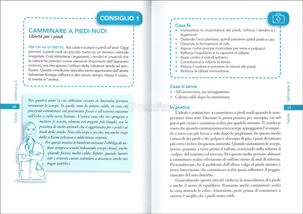 Giorno dopo giorno, seguendo chiare e veloci istruzioni potrai applicare semplici ma decisivi consigli di salute, mind-body medicine, alimentazione, mondo interiore, movimento, relazioni interpersonali, bellezza, fino a costruirti uno straordinario metodo su misura per prenderti cura di te anche con poco tempo a disposizione.