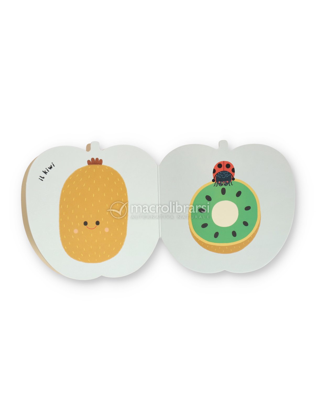 Sfogliando le pagine, i piccoli imparano a riconoscere i frutti interi o tagliati a metà, e possono strofinare le immagini per sentirne il profumo autentico.