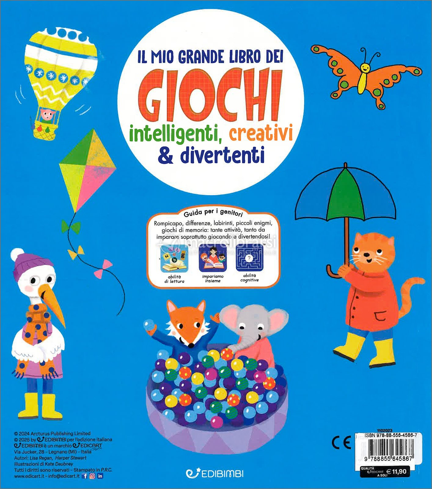 Il Mio Grande Libro dei Giochi Intelligenti, creativi & divertenti è una ricca raccolta di attività pensate per stimolare la curiosità e l’ingegno dei bambini.