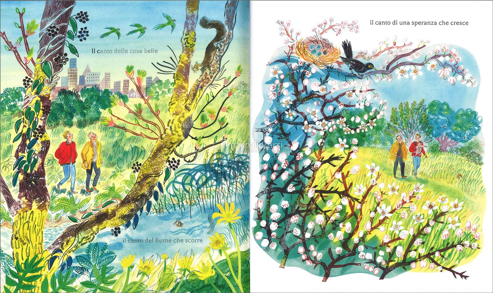 Nel paesaggio che muta e cambia nel tempo, proprio come accade ai due protagonisti nel viaggio della loro vita, si percepisce un canto nuovo, un futuro fatto ancora di sole e di fiori, di silenzio e di tuono, di ore condivise, di una speranza che cresce e che viene resa così visibile, quasi da toccare con mano grazie alle dettagliate e splendide illustrazioni di Emily Sutton.