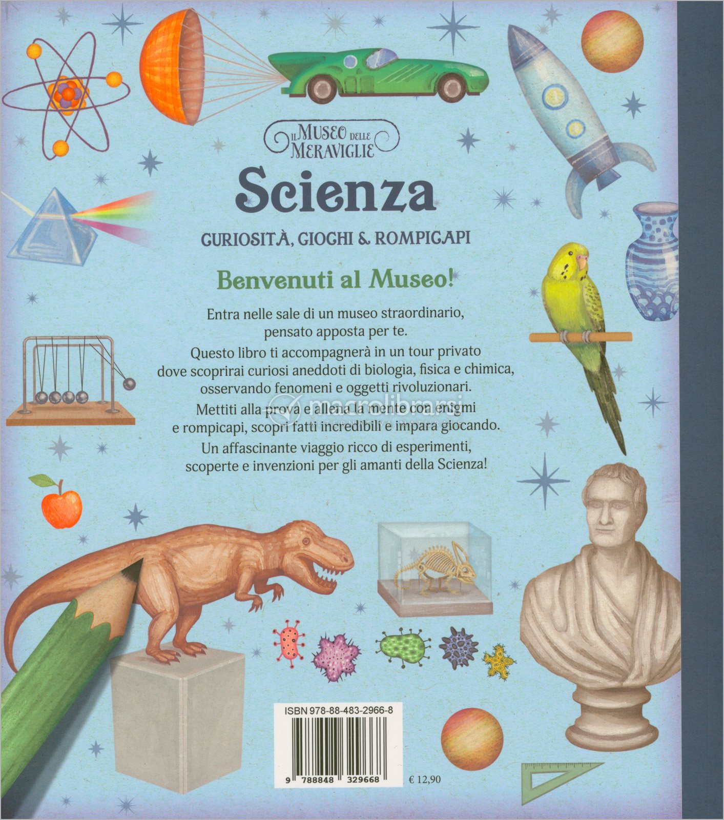 Questo volume accompagna i giovani lettori in un tour nelle meraviglie della scienza, tra curiosità di biologia, fisica e chimica spiegate attraverso giochi, rompicapi e attività creative.