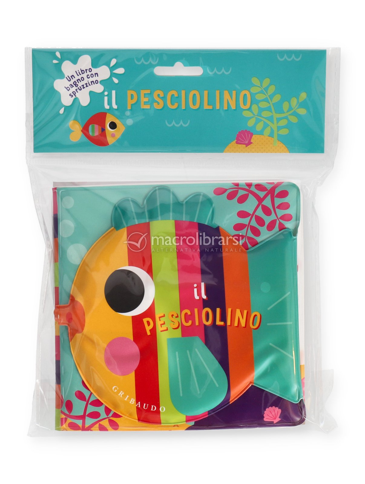 Immergi il libro nell’acqua, riempi la bocca del pesciolino, poi premilo e spruzza l’acqua!