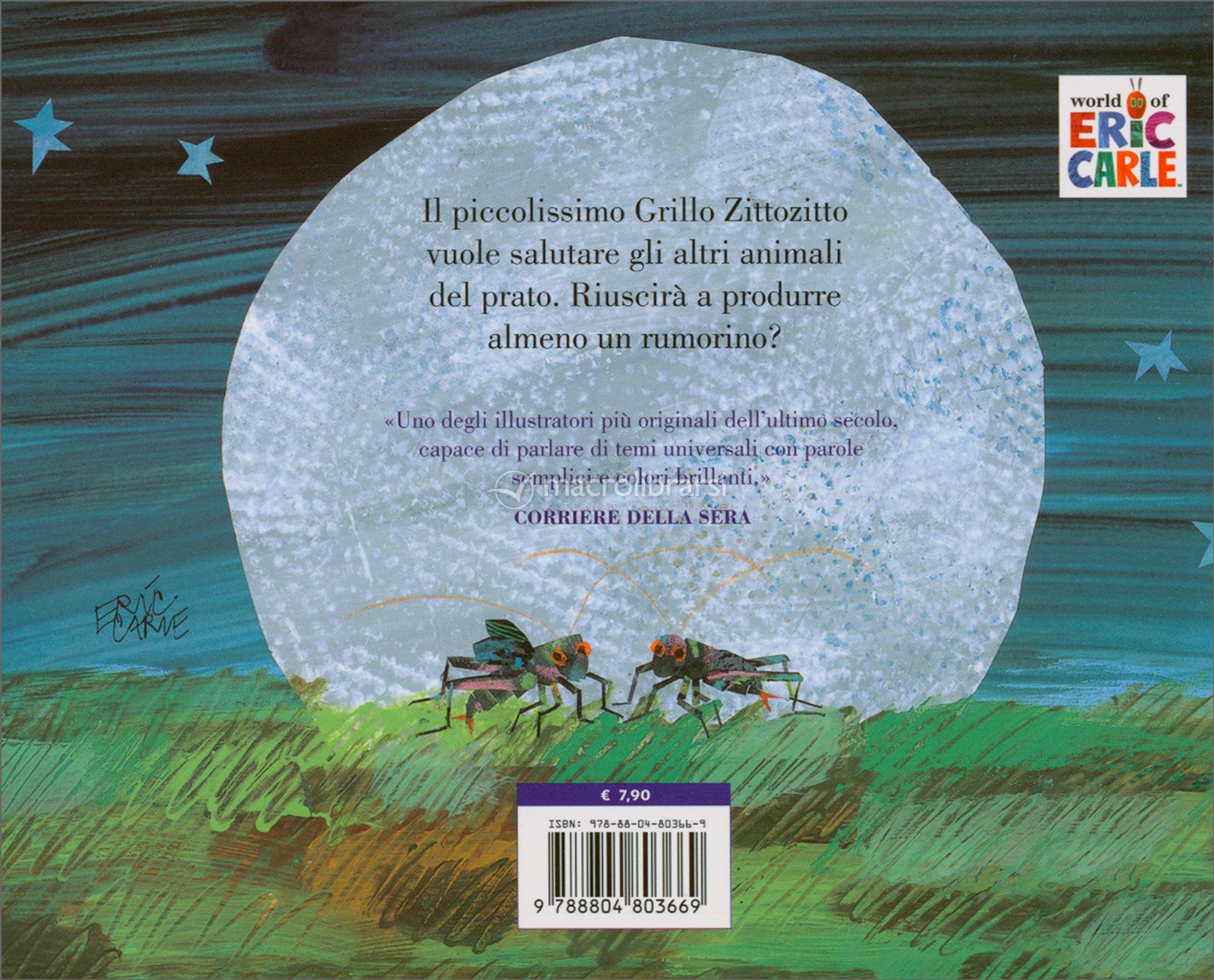 Il piccolissimo Grillo Zittozitto vuole salutare gli altri animali del prato. Riuscirà a produrre almeno un rumorino?