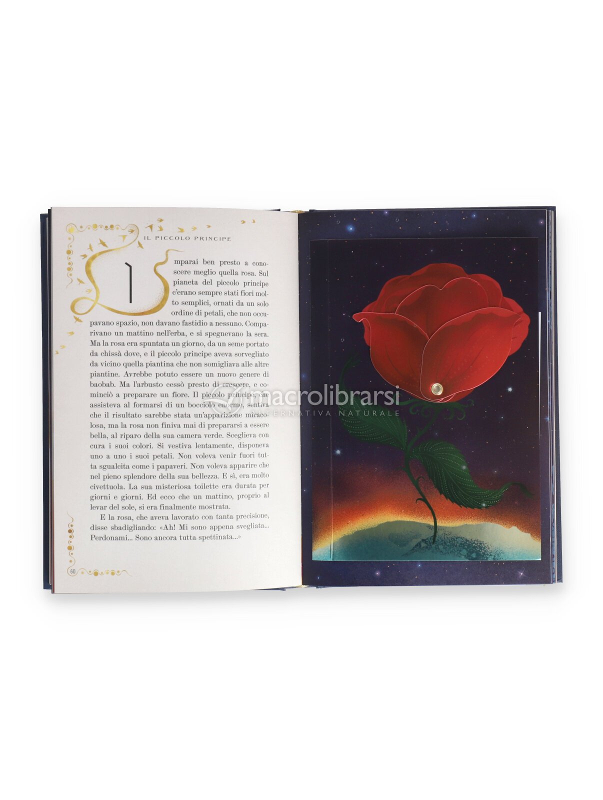 Il testo integrale si intreccia con illustrazioni raffinate e sorprendenti elementi interattivi che invitano il lettore a entrare fisicamente nella storia: prendersi cura della rosa, osservare i tramonti, attraversare il deserto.