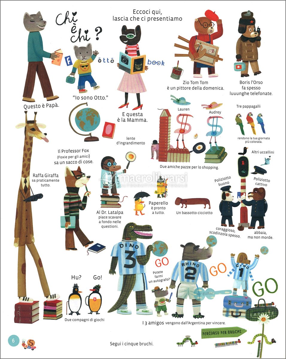 Otto è il protagonista del libro, viaggia e incontra nuovi amici, fa sport e pic nic nel bosco, passeggia in città e scopre come si vive in fondo al mare... Di tanto in tanto l’autore coinvolge il bambino in un gioco e gli chiede di trovare Otto e i suoi amici persi tra i particolari