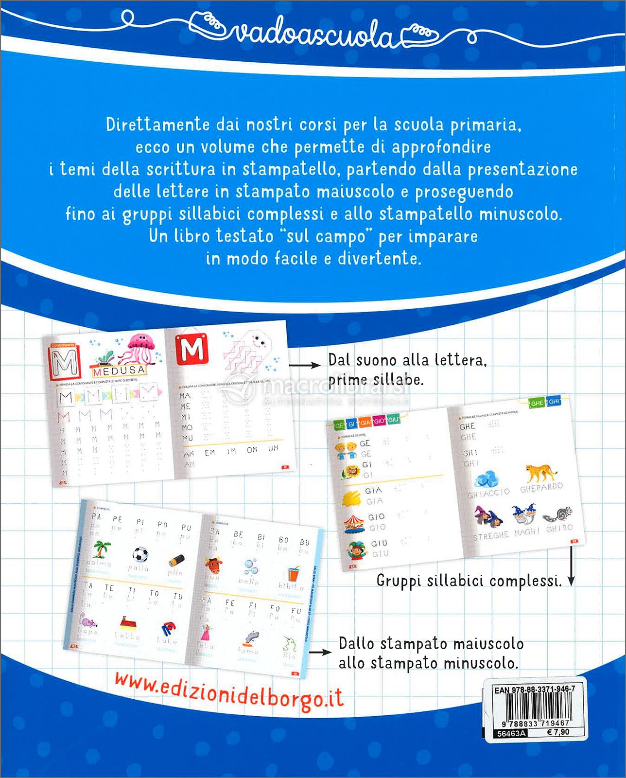Direttamente dai nostri testi per la scuola primaria, ecco un libro che prepara il bambino ad approfondire i temi della scrittura in stampatello partendo dalle vocali, proseguendo con le consonanti, le sillabe e i gruppi sillabici complessi.