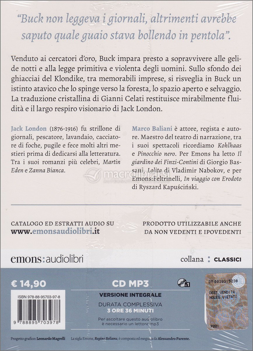 Sullo sfondo dei ghiacciai del Klondike, Buck si lancia in imprese memorabili e, tra fatiche impervie e nuovi legami, si risveglia irrefrenabile in lui un istinto atavico che lo spinge verso la foresta, lo spazio aperto e selvaggio.