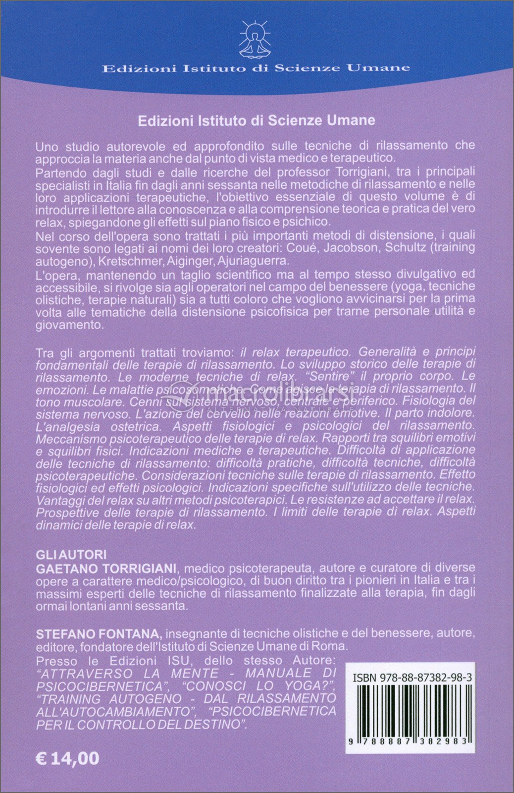 Partendo dagli studi e dalle ricerche del professor Torrigiani, tra i principali specialisti in Italia fin dagli anni sessanta nelle metodiche di rilassamento e nelle loro applicazioni terapeutiche, l'obiettivo essenziale di questo volume è di introdurre il lettore alla conoscenza e alla comprensione teorica e pratica del vero relax, spiegandone gli effetti sul piano fisico e psichico.