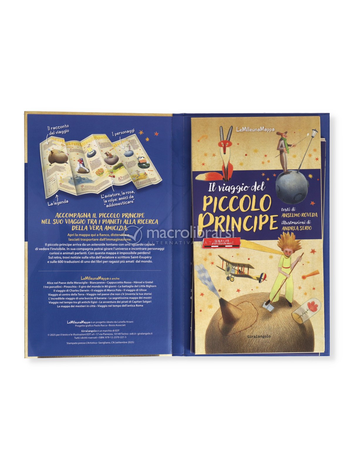 Tra pianeti lontani, personaggi curiosi e animali parlanti, la fantasia diventa bussola, mentre sul retro della mappa si trovano curiosità sulla vita di Saint-Exupéry e sulle tante traduzioni del suo capolavoro.