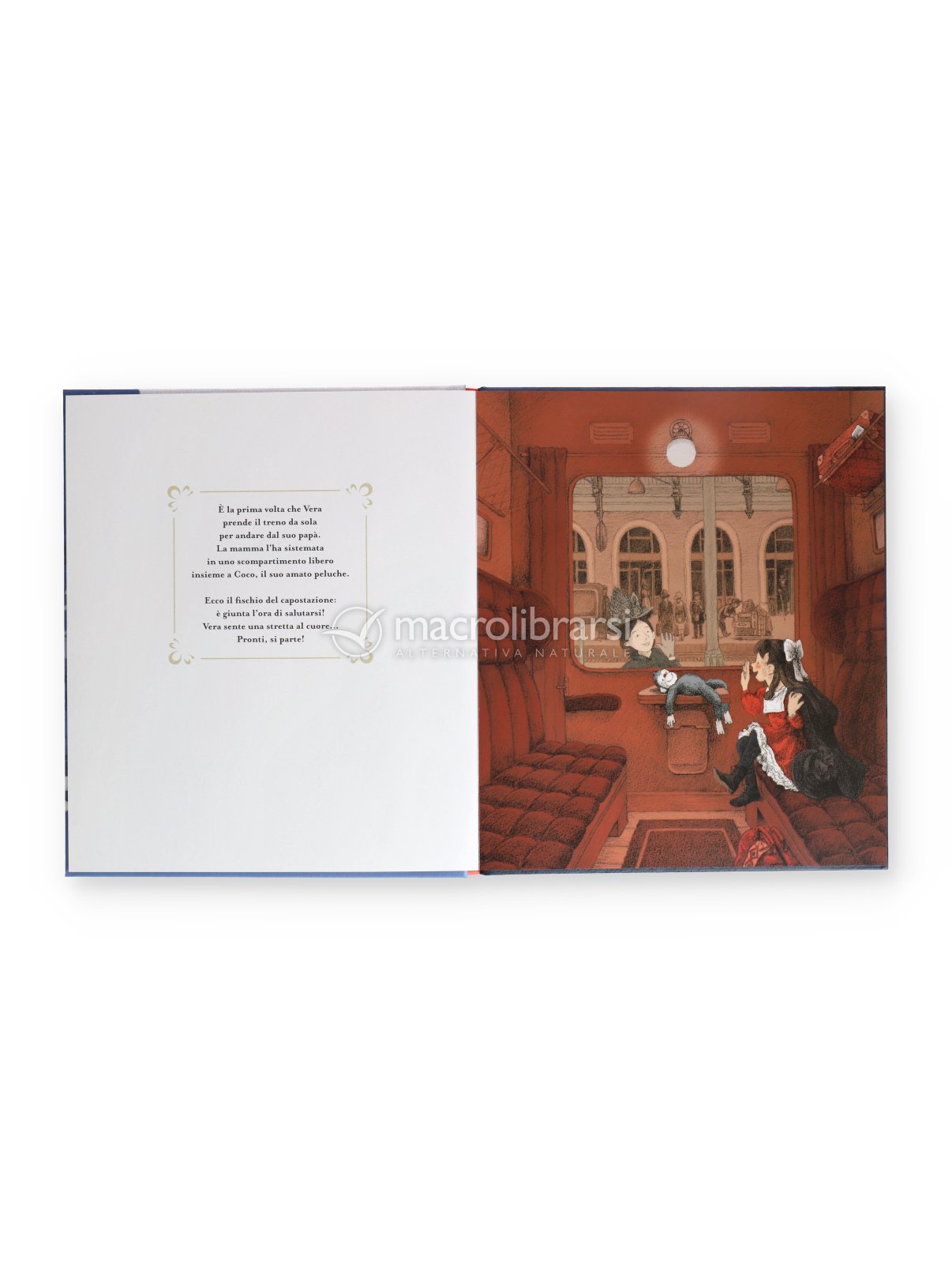 La mamma l’ha sistemata in uno scompartimento libero insieme a Coco, il suo amato peluche, e durante il viaggio la bambina è rapita dai tanti paesaggi che le scorrono davanti.