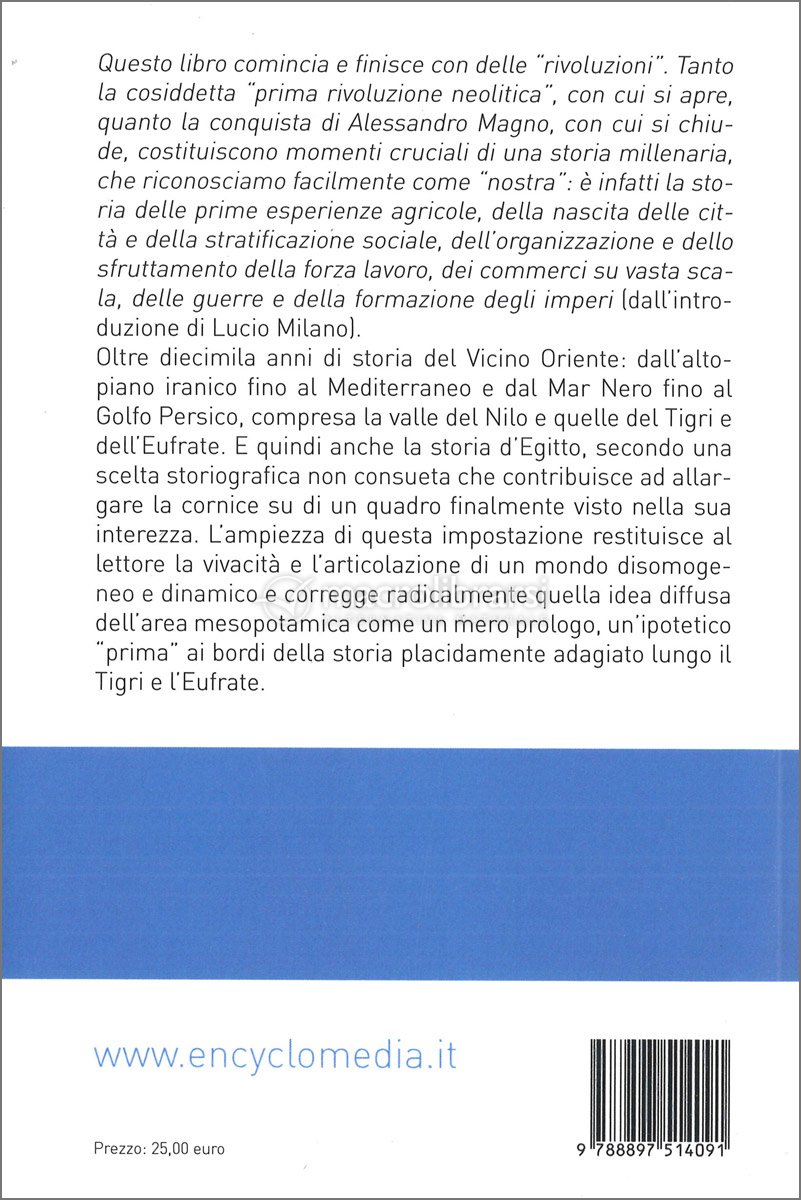 Questo libro comincia e finisce con delle “rivoluzioni”. Tanto la cosiddetta “prima rivoluzione neolitica”, con cui si apre, quanto la conquista di Alessandro Magno, con cui si chiude, costituiscono momenti cruciali di una storia millenaria, che riconosciamo facilmente come “nostra”: è infatti la storia delle prime esperienze agricole, della nascita delle città e della stratificazione sociale, dell’organizzazione e dello sfruttamento della forza lavoro, dei commerci su vasta scala, delle guerre e della formazione degli imperi.