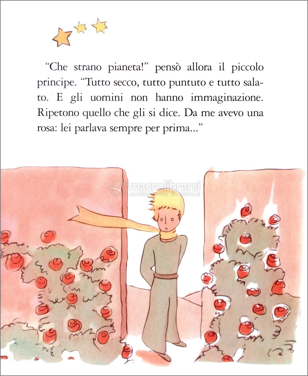A parlare è un bambino, il principe del lontano asteroide B612 su cui viveva in compagnia di tre vulcani e una rosa.
