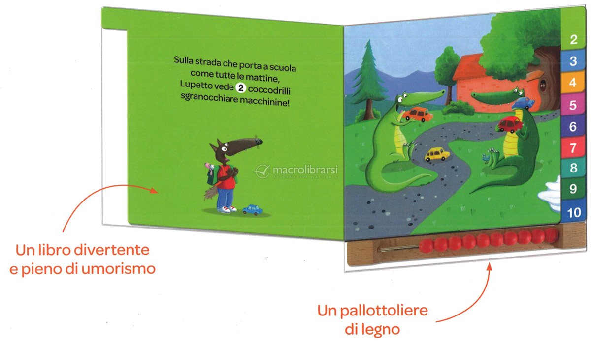 Impara a contare fino a 10 con Lupetto! Un libro interattivo, con un pallottoliere di legno, per stimolare l'attenzione del bambino e aiutarlo a visualizzare le quantità.
