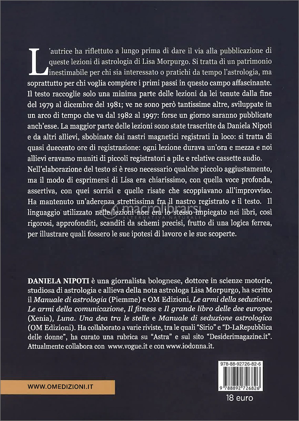 Questo volume raccoglie le lezioni di Lisa Morpurgo, una delle figure più autorevoli e originali dell’astrologia contemporanea, restituendone la voce, la forza, la chiarezza e l’energia che hanno segnato generazioni di allievi.