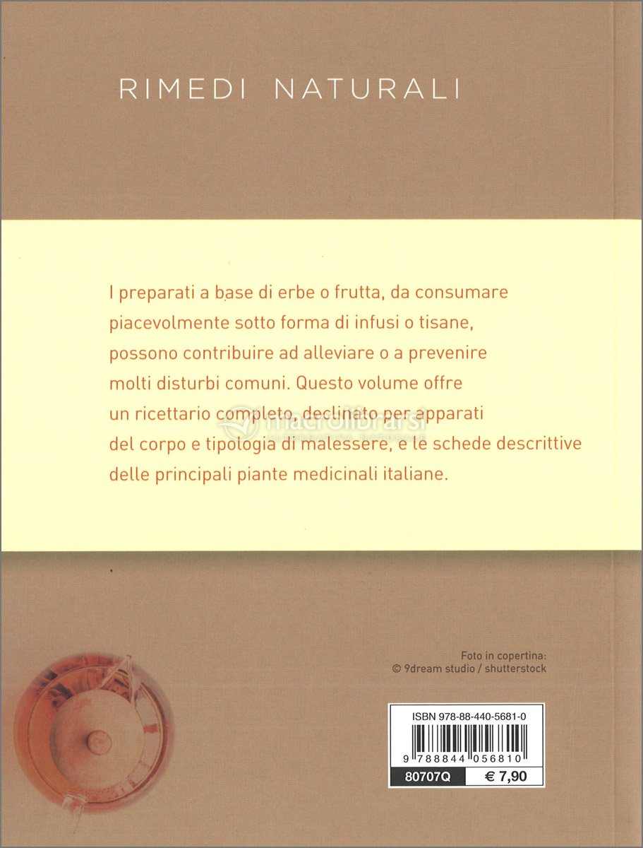 Il libro Infusi e tisane propone sia un ricco ricettario di tisane fatte in casa e infusi curativi, organizzato per categorie di disturbo e comprensivo di posologia, tempi, avvertenze e limitazioni per l'assunzione.