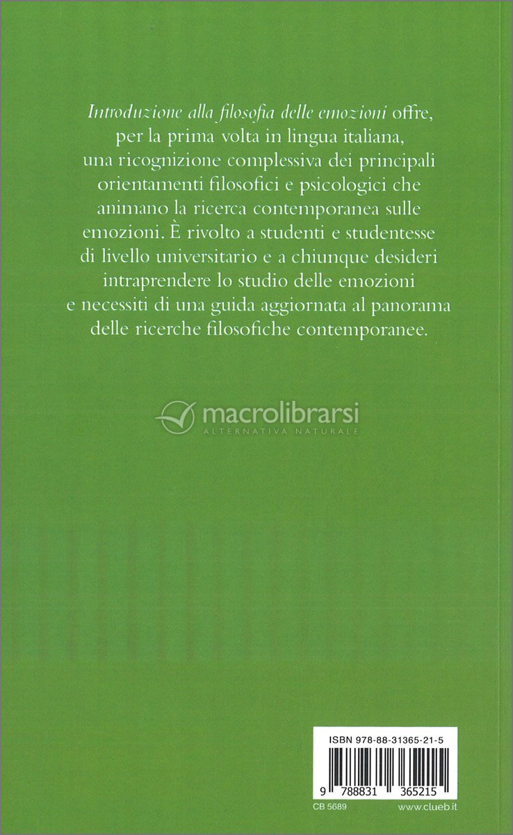"Introduzione alla filosofia delle emozioni" è rivolto a chiunque desideri intraprendere lo studio delle emozioni e necessiti di una guida aggiornata al panorama delle ricerche filosofiche contemporanee.