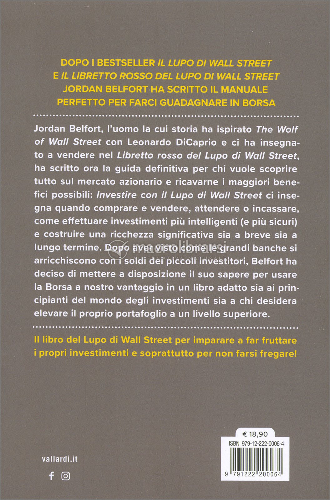 Jordan Belfort, l’uomo la cui storia ha ispirato The Wolf of Wall Street con Leonardo DiCaprio e ci ha insegnato a vendere nel Libretto rosso del Lupo di Wall Street, ha scritto ora la guida definitiva per chi vuole scoprire tutto sul mercato azionario e ricavarne i maggiori benefici possibili: Investire con il Lupo di Wall Street ci insegna quando comprare e vendere, attendere o incassare, come effettuare investimenti più intelligenti (e più sicuri) e costruire una ricchezza significativa sia a breve sia a lungo termine.