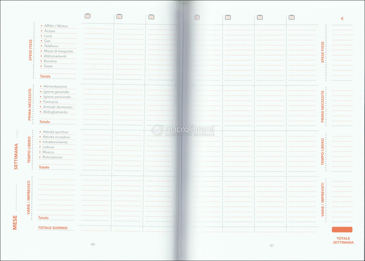Utilizzato per due anni, trovo che sia molto ben strutturato e intuitivo da utilizzare. Le spese sono suddivise per categorie in modo da rendersi conto anche a vista d'occhio dove sia la spesa maggiore. A fine libro sono presenti anche dei grafici per verificare l'andamento annuo delle spese per categoria. Si é invitati a porsi dei propositi per il mese in arrivo ed anche per l'anno intero che danno un input in più per impegnarsi a conseguirli. Ho trovato molto utile anche una tabella da utilizzare quando si é indecisi su un acquisto, questa aiuta a discernere se sia una buona idea o meno ed è un metodo che ho fatto mio ed ho utilizzato regolarmente!