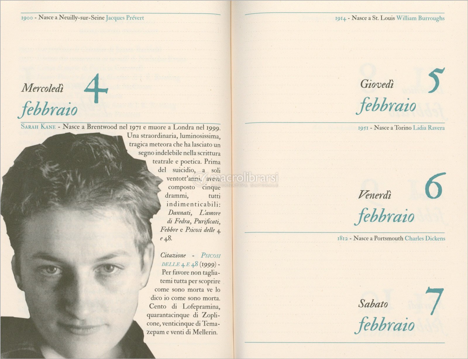 Tra le sue pagine troverai citazioni memorabili, biografie di scrittrici e scrittori, date di nascita, incipit indimenticabili, premi letterari e tanto altro per vivere ogni giorno in compagnia della letteratura.