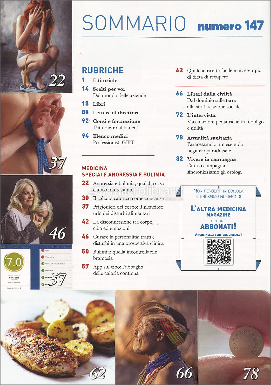 L’argomento speciale di questo numero è ‘Anoressia e bulimia’.